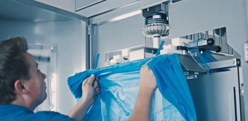 受益于EasyPlast機(jī)器系統(tǒng),只有一側(cè)的袋子被夾起,另一側(cè)仍留在儲袋處。