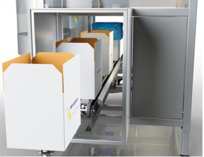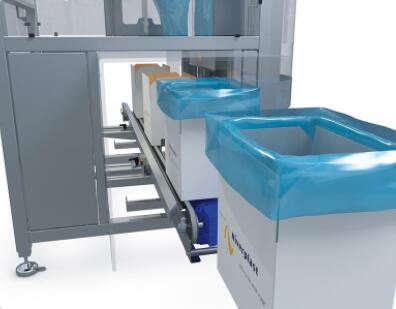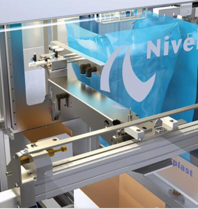 在箱子傳送過程中,預(yù)制的袋子由真空夾具抓起。