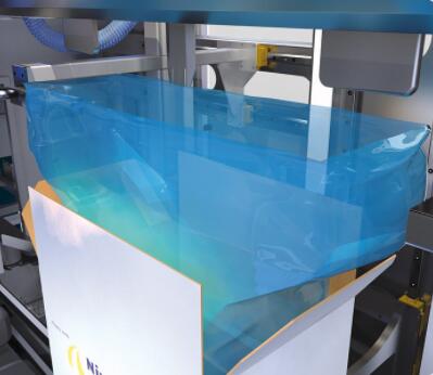 箱子朝密封單元抬起。在這里,兩個真空夾具從箱子的短邊撿起袋子。