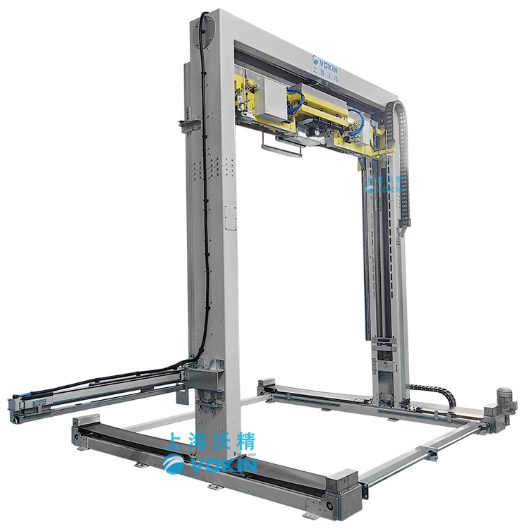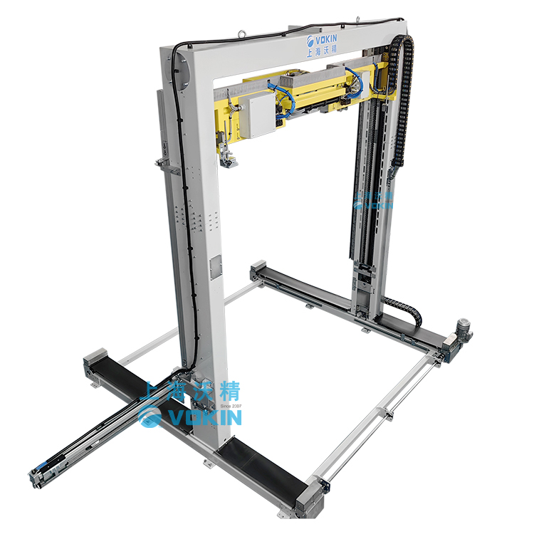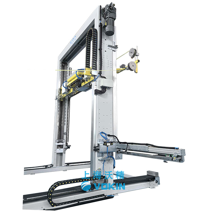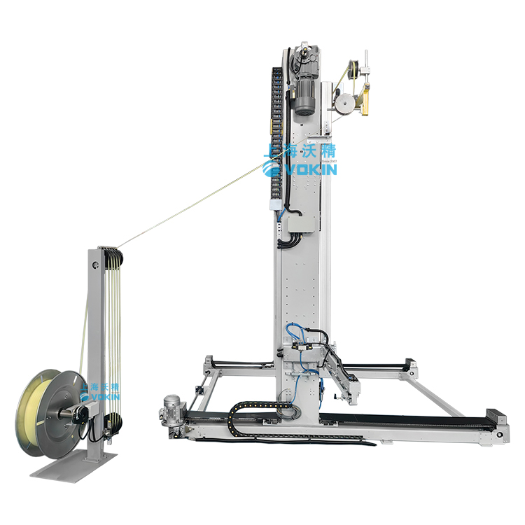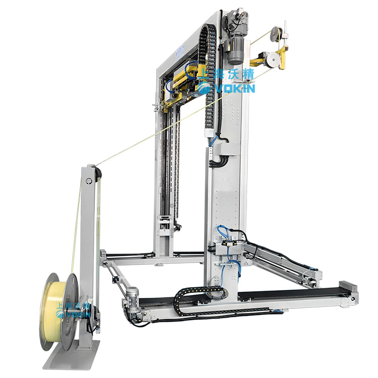 移動式打帶機可以自動尋找打帶位置并且配合打帶機底部的旋轉(zhuǎn)臺輸送機,可以完成井字型打帶。
